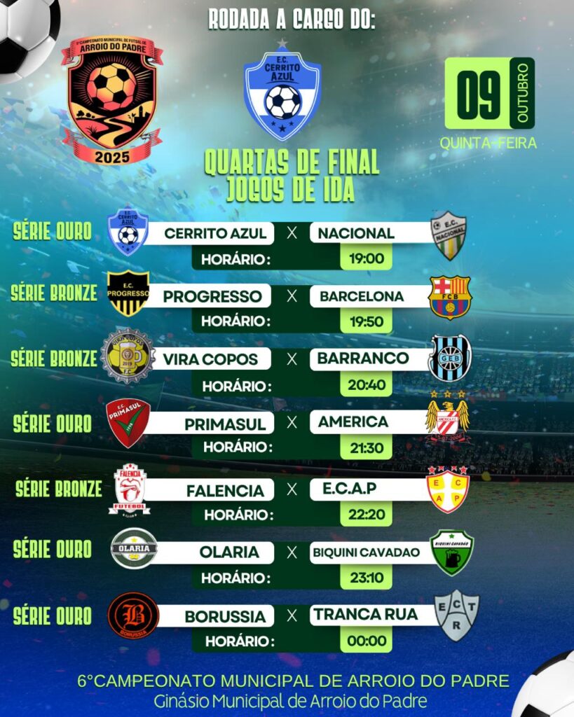 Dessa maneira os confrontos de quartas de final das séries bronze, prata e ouro ficaram definidos inclusive com horários, a rodada de ida já na quinta feira próxima, dia 9 de outubro. Igualmente os mandantes das rodadas de quartas de final, ida, volta e a grande final, conforme segue: