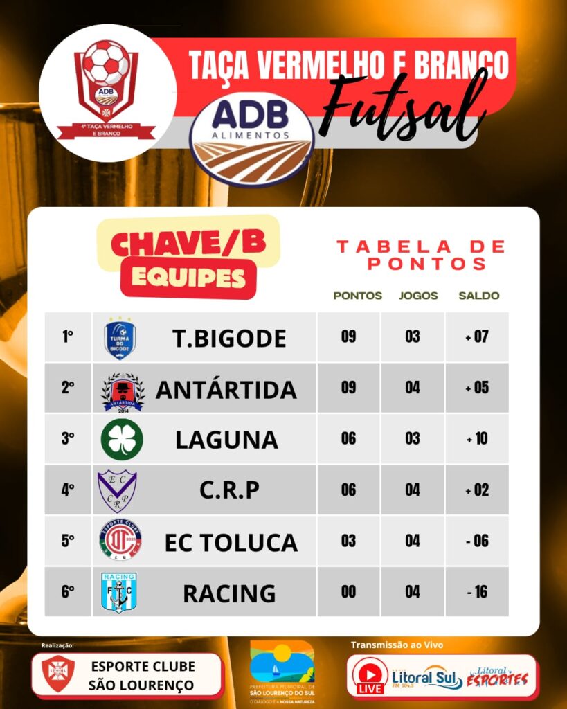 A 10ª rodada da Taça Vermelho e Branco ADB Alimentos teve a sua décima rodada disputada ontem, quarta feira dia 8 de outubro no ginásio de esportes do Esporte Clube São Lourenço. Mais três jogos importantes, disputados e já com a primeira equipe definitivamente sem chances de classificação. Os jogos com seus detalhes: