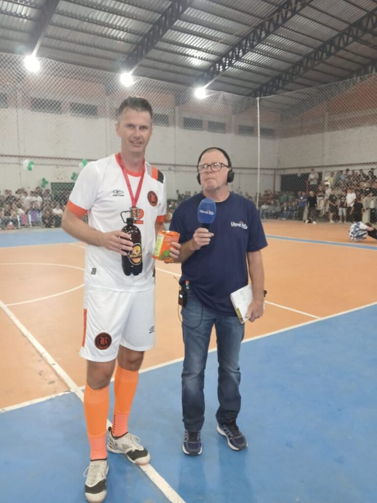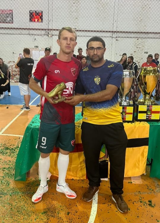 Goleador – Troféu Danigol: Gustavo Milech do Primasul. Na imagem o irmão de Daniel Ramires de Mattos, Marcos entregando o troféu ao goleador do campeonato. Imagem de Marcos Ramires.