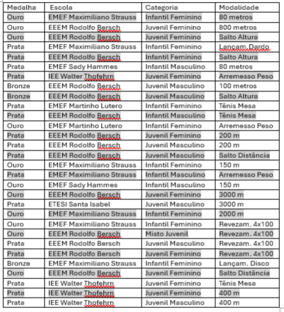 Texto e quadro de medalhas: Airton F. Iepsen em colaboração com a professora Adriana Mailan.