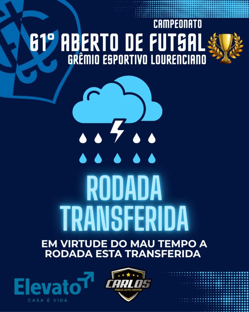 Na verdade durante a noite não tivemos incidência de chuva na região. Porém a comissão organizadora do 61º Campeonato Aberto de Futsal Elevato/Carlos Pneus precisa definir a realização ou não da rodada até as 17 horas, três horas antes do início do primeiro jogo. E porque isso? Porque a arbitragem vem de Pelotas, e atletas de outros municípios que fazem parte das equipes também. Em caso de cancelamento na hora, isso causaria um prejuízo financeiro tanto para o clube organizador como para as equipes que arcam com as despesas no mínimo de deslocamento de árbitros e atletas. Assim a 3ª rodada da competição está marcada para realização na próxima segunda feira dia 19 de janeiro, com os jogos já previstos. Veja confrontos e horários: