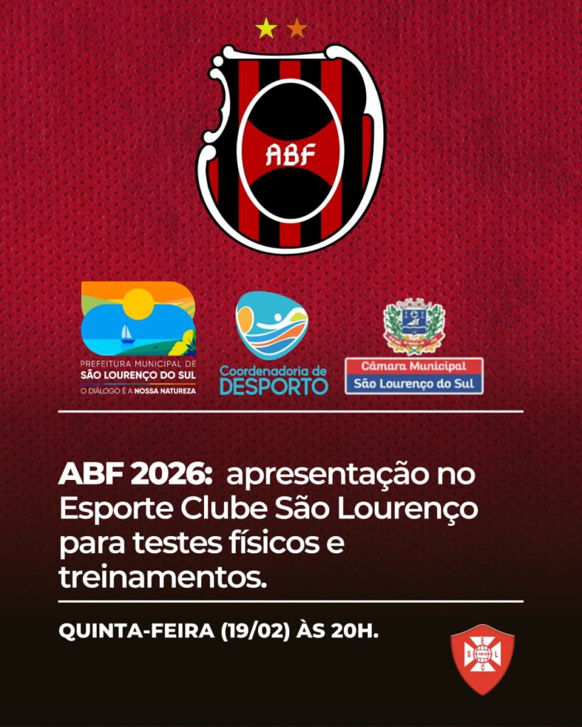 Na noite de hoje, quinta feira dia 19 de fevereiro o rubro negro lourenciano, ABF Futsal se apresenta para os primeiros testes físicos e treinamentos se preparando para uma dura temporada ano 2026.