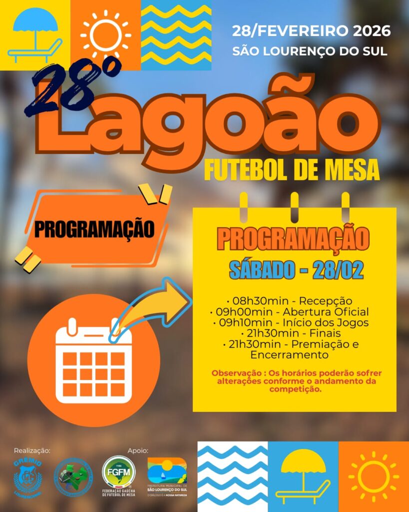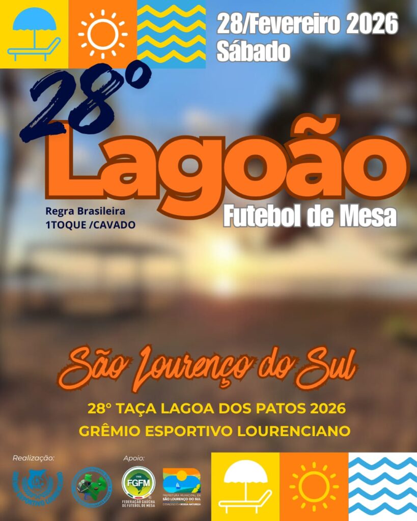 Uma das mais tradicionais competições do futebol de mesa gaúcho fora do calendário oficial da Federação Gaúcha, a 28ª edição da Taça Lagoa dos Patos, mais conhecida por Lagoão de Futebol de Mesa acontece na sede social do Grêmio Esportivo Lourenciano nesse sábado, dia 28 de fevereiro.