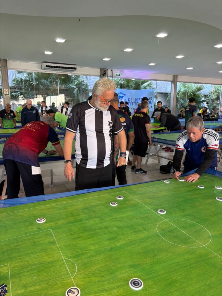 Entre um jogo e uma arbitragem conversamos com o vice presidente da Confederação Brasileira de Futebol de Mesa o carioca, botafoguense Robson Marfa. Robson conta que já foi presidente da entidade por oito anos. Hoje o presidente da Confederação é o paulista Jorge Pará. Abaixo imagem de Robson Marfa na manhã desse sábado.