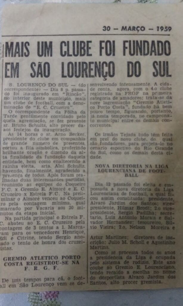 Um dos clubes mais vencedores do futebol do interior do município de São Lourenço do Sul, o Grêmio Esportivo Serramalte foi fundado em 19 de abril de 1966. Na verdade foi uma transformação de Esporte Clube Cruzeiro em Grêmio esportivo Serramalte. Porque a troca do nome? Rodolfo Schulz, morador na estrada Pinheiros era na época distribuidor dos produtos Serramalte fabricados em Getúlio Vargas. E a fábrica daria apoio para o clube com a troca do nome. Assim, em assembleia em 19 de abril de 1966, com Olavo Derly de Morais como secretário, surgiu o Grêmio Esportivo Serramalte, que teve como seu primeiro presidente o saudoso Alfredo Kuhn. Uma imagem antiga ainda do E. C. Cruzeiro.